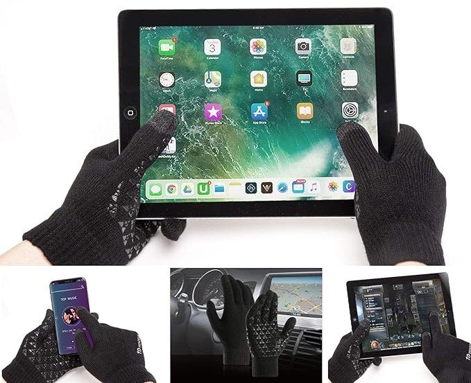 - GUANTES TÁCTILES con material conductor de alta sensibilidad en los dedos pulgares, índices y medios, puedes usar los guantes para tocar la pantalla de tu smartphone, tablet, iPhone u otros dispositivos con pantalla táctil